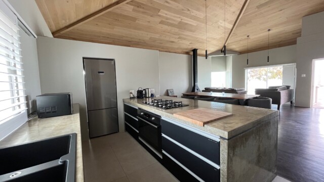 | Minimum stay of 4 nights 3 bedrooms (max. 6 persons) 3 bathrooms Braai Area (BBQ) Direct beach access free WIFI/fiber internet solar energy & back-up batteries spacious, well-equipped Kite Storage Area | |